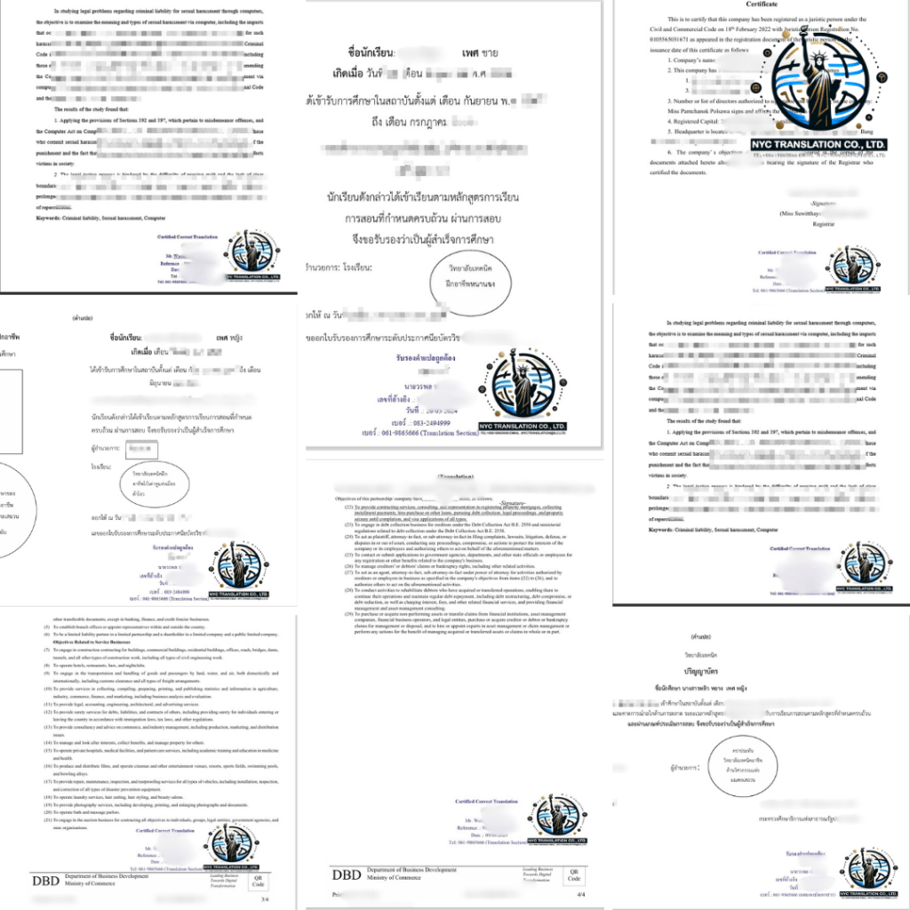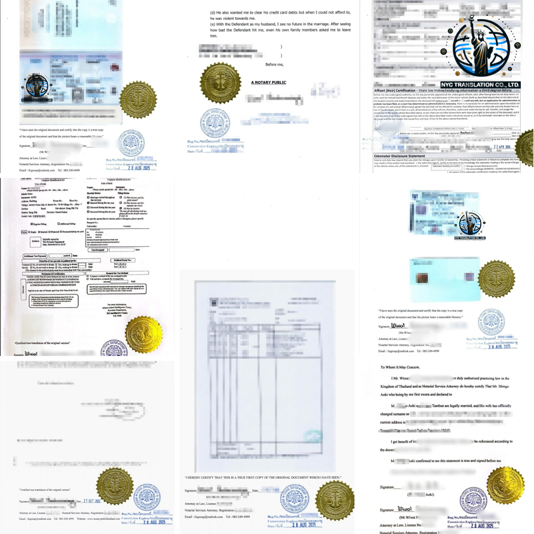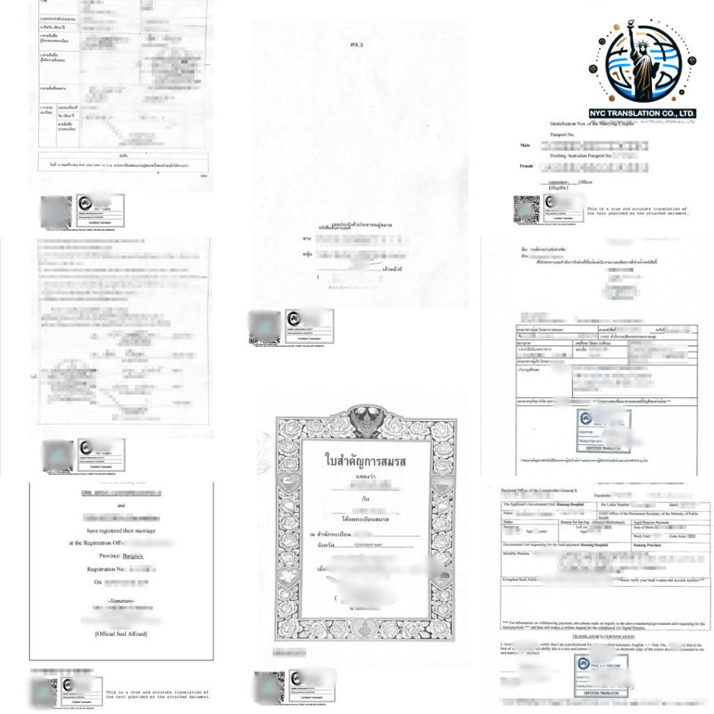 NYC Translation Service รับรองเอกสารทุกประเภท เช่น โดย Notary Public, NAATI, สถานทูต, กงสุล และอื่น ๆ