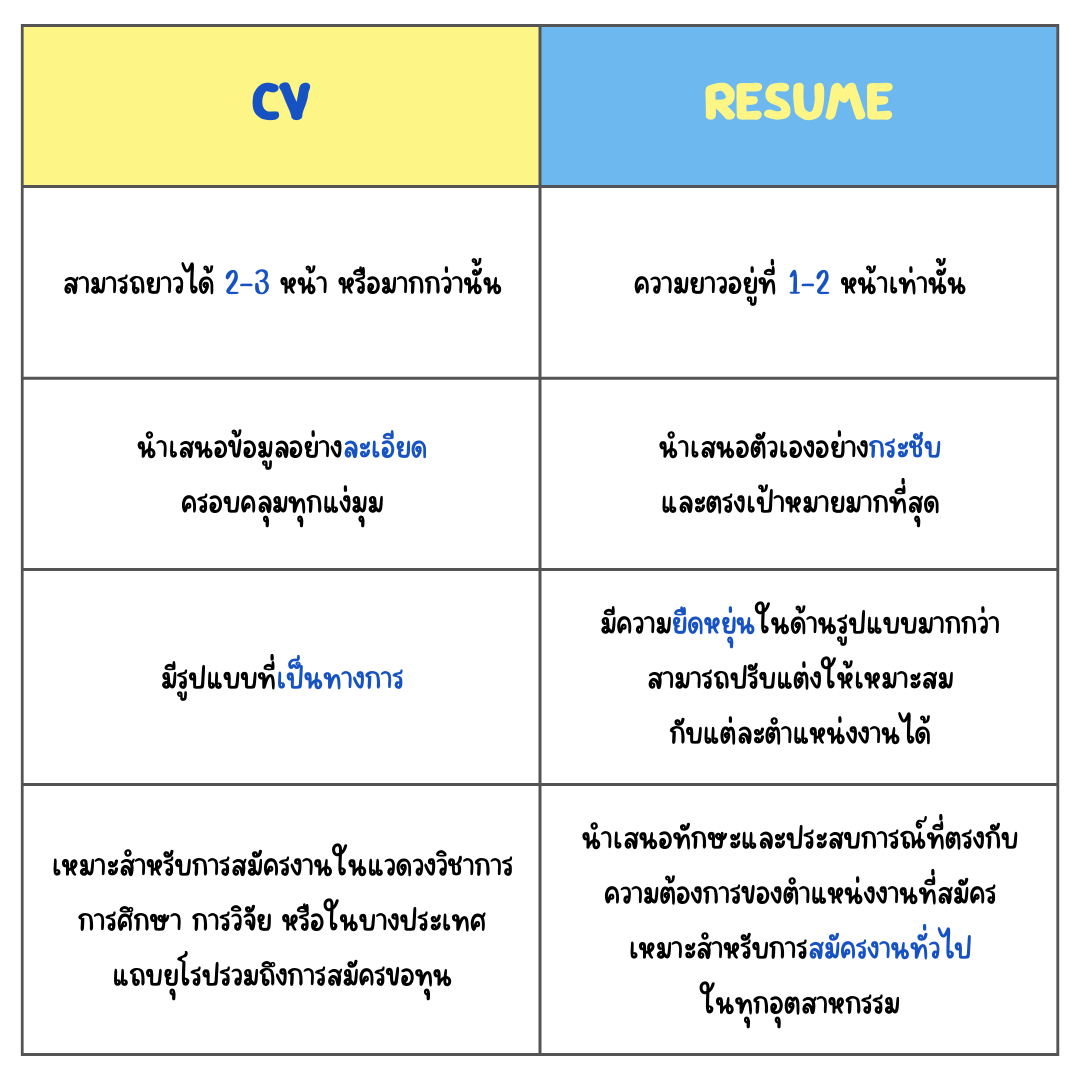 คุณกำลังสับสนระหว่าง CV และ Resume ใช่ไหม? หลายคนมักใช้สองคำนี้แทนกัน แต่จริงๆ แล้ว CV (Curriculum Vitae) และ Resume มีความแตกต่างกันอย่างมีนัยสำคัญ ทั้งในด้านเนื้อหา โครงสร้าง วัตถุประสงค์ และการใช้งาน บทความนี้จะพาคุณไปเจาะลึกทุกแง่มุมของความแตกต่างระหว่าง CV และ Resume เพื่อไขข้อสงสัยทั้งหมดที่คุณมี ไม่ว่าคุณจะเป็นนักศึกษาจบใหม่ที่กำลังมองหางานแรก หรือมืออาชีพที่ต้องการเปลี่ยนสายงาน การเข้าใจความแตกต่างนี้จะช่วยให้คุณนำเสนอตัวเองได้อย่างมีประสิทธิภาพและตรงเป้าหมาย