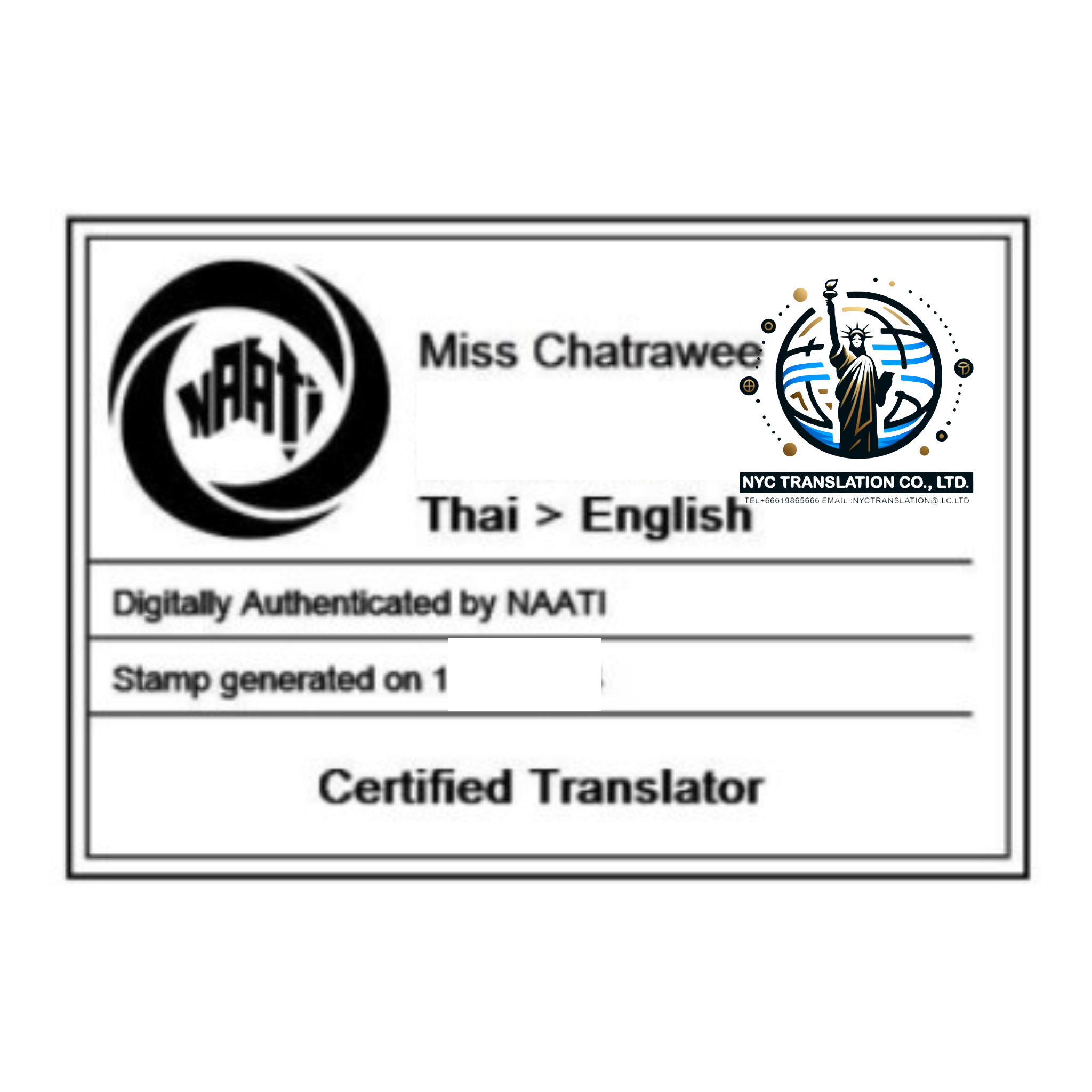 ที่ NYC Translation Service เรามีนักแปล NAATI ประจำ พร้อมตรวจสอบและรับรองคำแปลทุกชิ้นอย่างมืออาชีพ ทั้งการเซ็นชื่อรับรองเอกสาร การจัดรูปแบบ และการให้คำแนะนำที่ถูกต้องตามข้อกำหนดของสถานทูตและหน่วยงานที่เกี่ยวข้อง